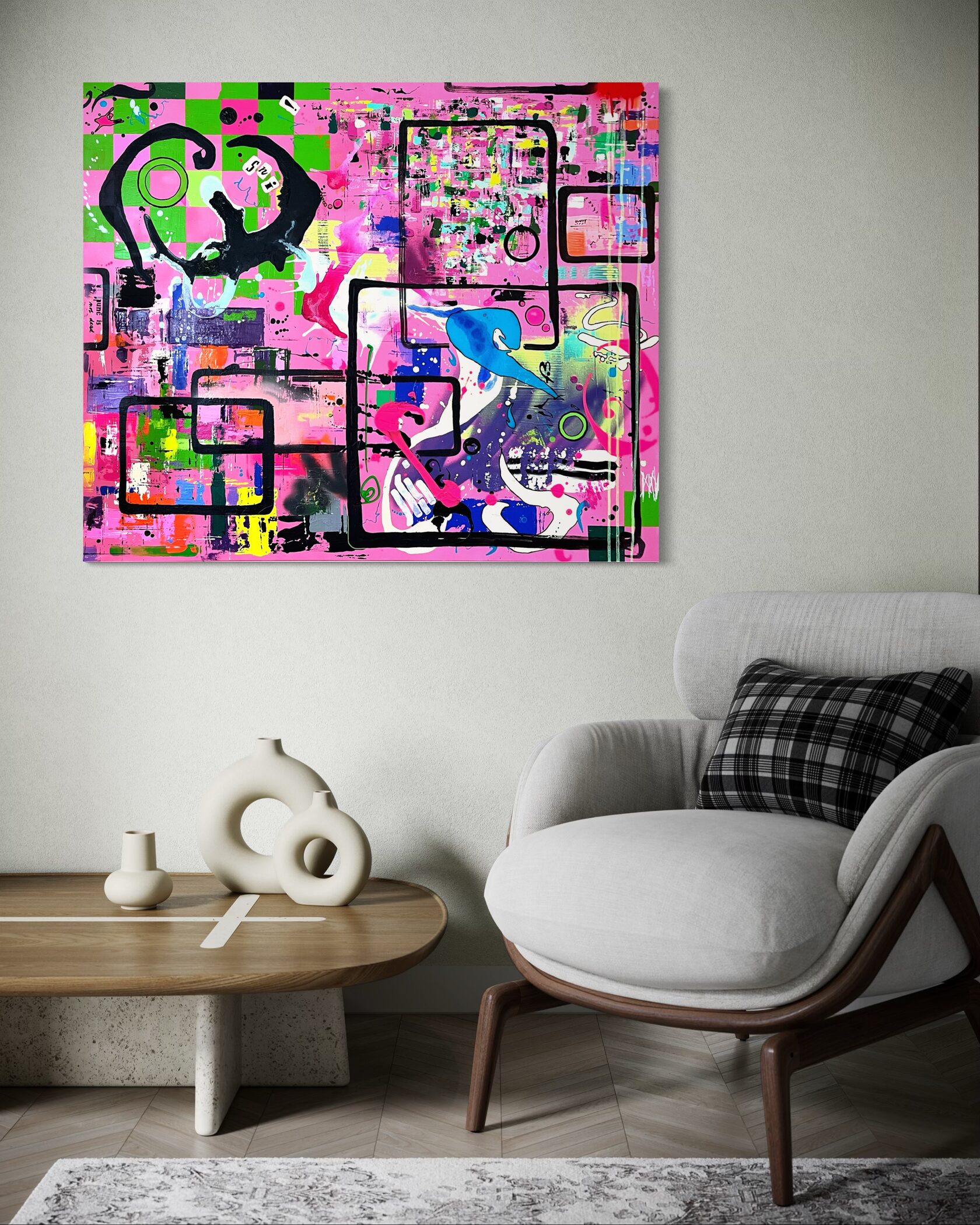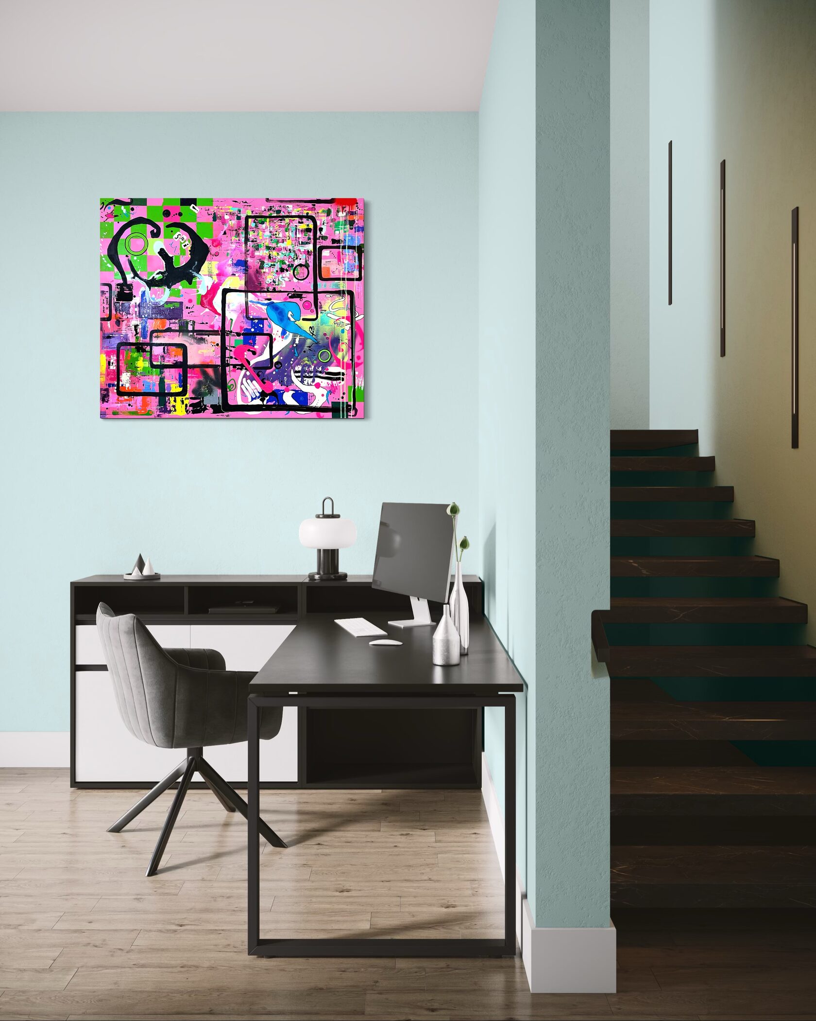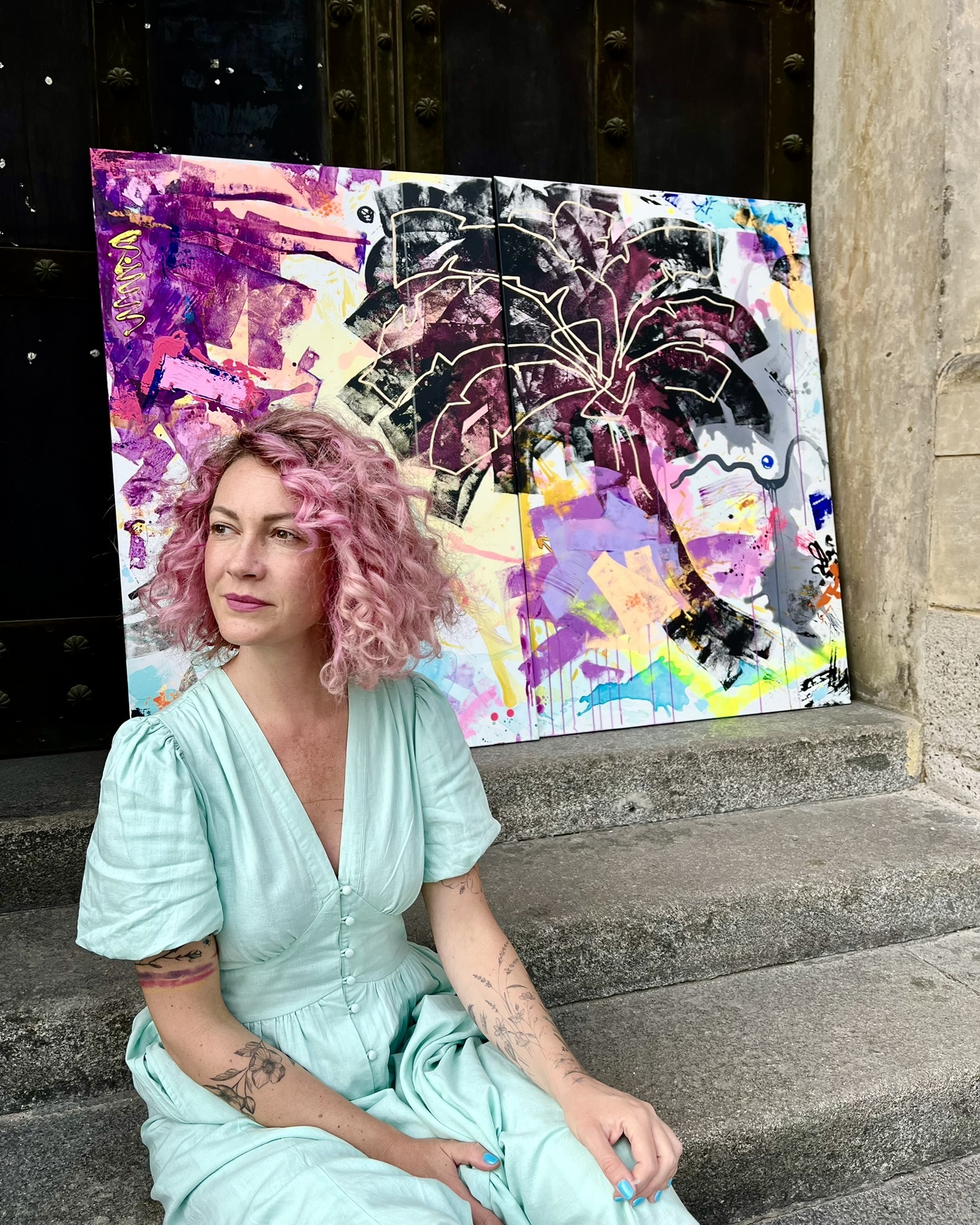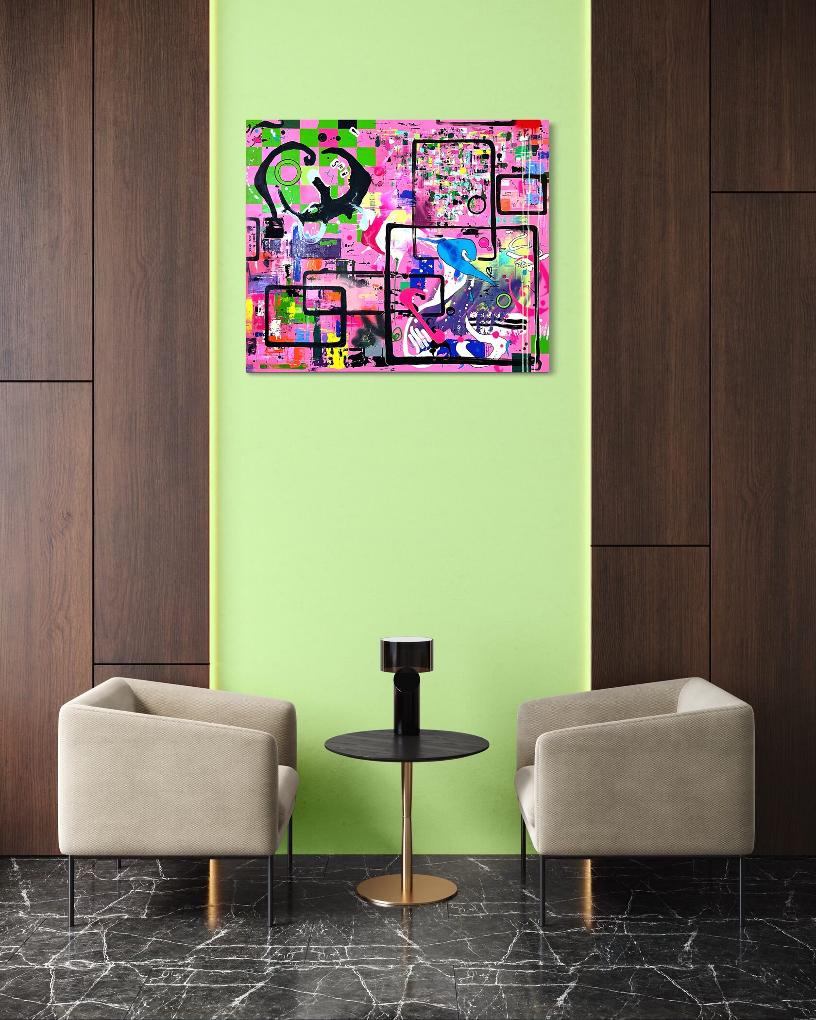 Zelený podklad jako základ, růžová jako lahodně kontrastní barva a další jejich odstíny doplněné o několik pastelově pestrých barviček mu dodávávají nádech rozvernosti, hravosti a jiskřivosti. Uhlazené horizontálně vertikální tahy v pravém horním rohu dramaticky konverzují s nahodilými výbuchy barev uprostřed. Energie a výraz postavy spokojeně rozjímající nad vším, co jí dělá radost, nad vším, co se jí povedlo, nad vším, na co je pyšná, nad láskou k životu, tvoří dílo, ve kterém můžete uvidět všecky svoje vnitřní touhy a naděje. ♥️ A to je obraz Pride!