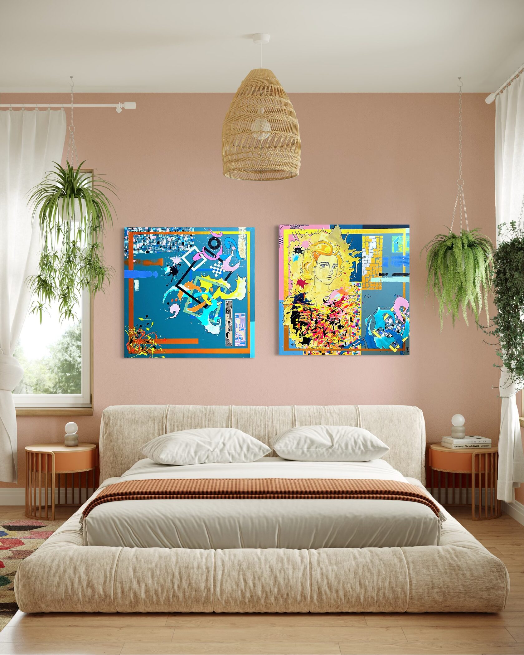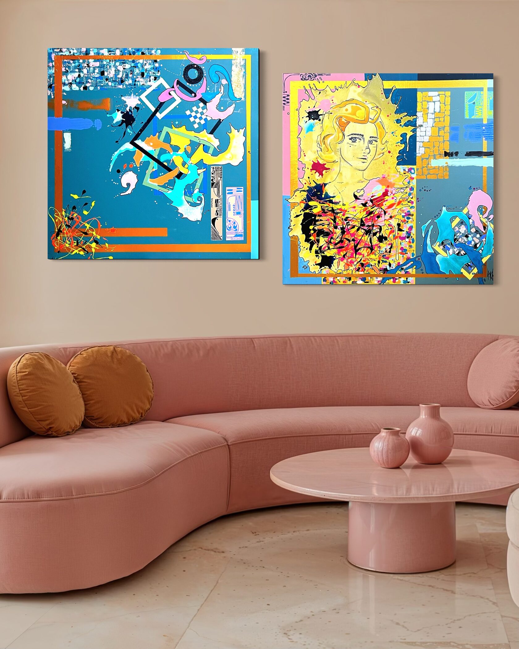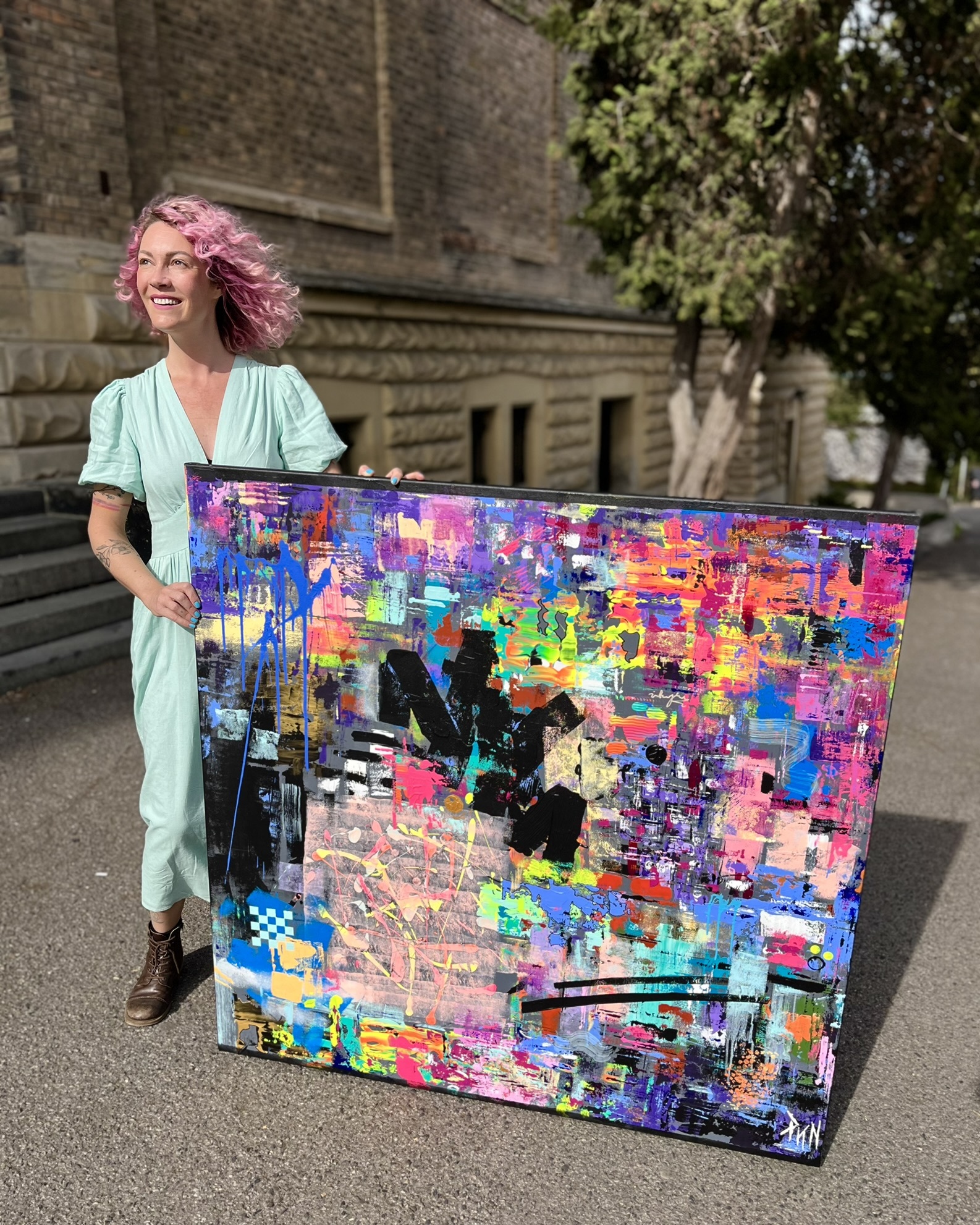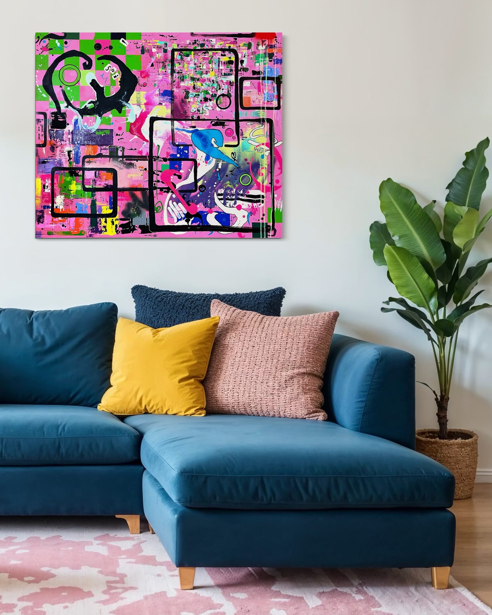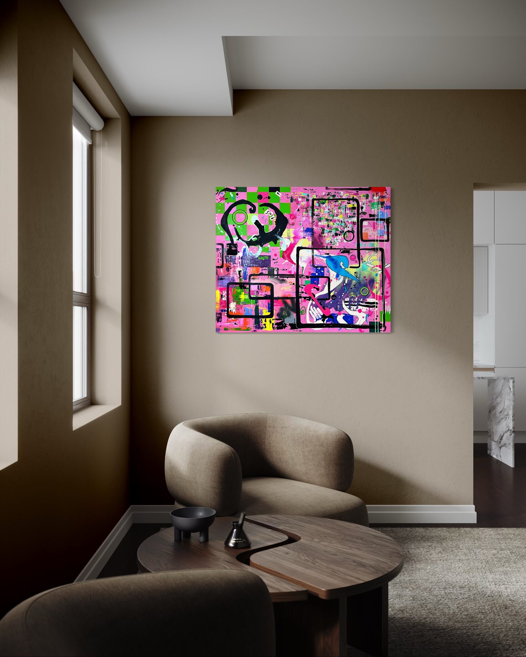 Zelený podklad jako základ, růžová jako lahodně kontrastní barva a další jejich odstíny doplněné o několik pastelově pestrých barviček mu dodávávají nádech rozvernosti, hravosti a jiskřivosti. Uhlazené horizontálně vertikální tahy v pravém horním rohu dramaticky konverzují s nahodilými výbuchy barev uprostřed. Energie a výraz postavy spokojeně rozjímající nad vším, co jí dělá radost, nad vším, co se jí povedlo, nad vším, na co je pyšná, nad láskou k životu, tvoří dílo, ve kterém můžete uvidět všecky svoje vnitřní touhy a naděje. ♥️ A to je obraz Pride!