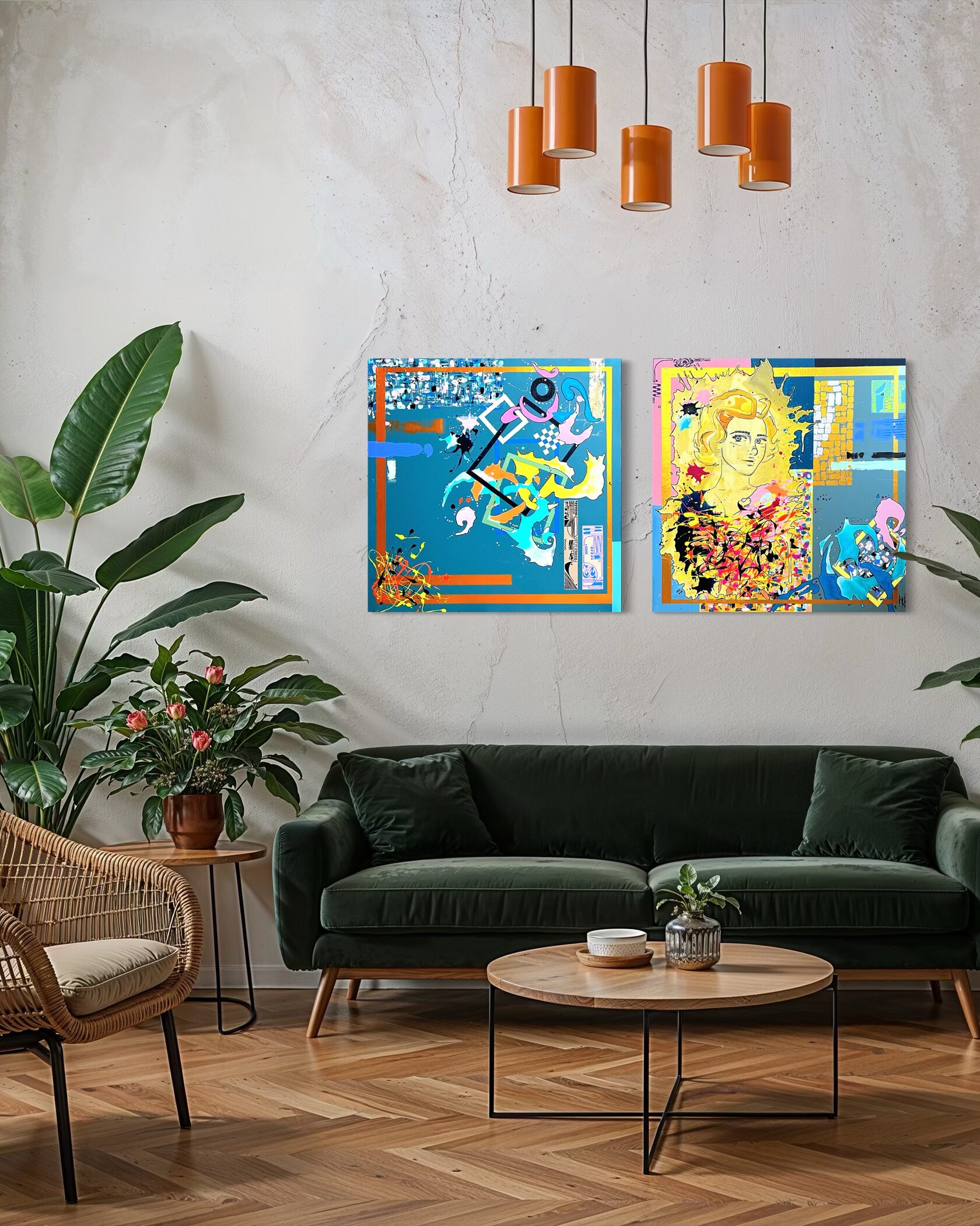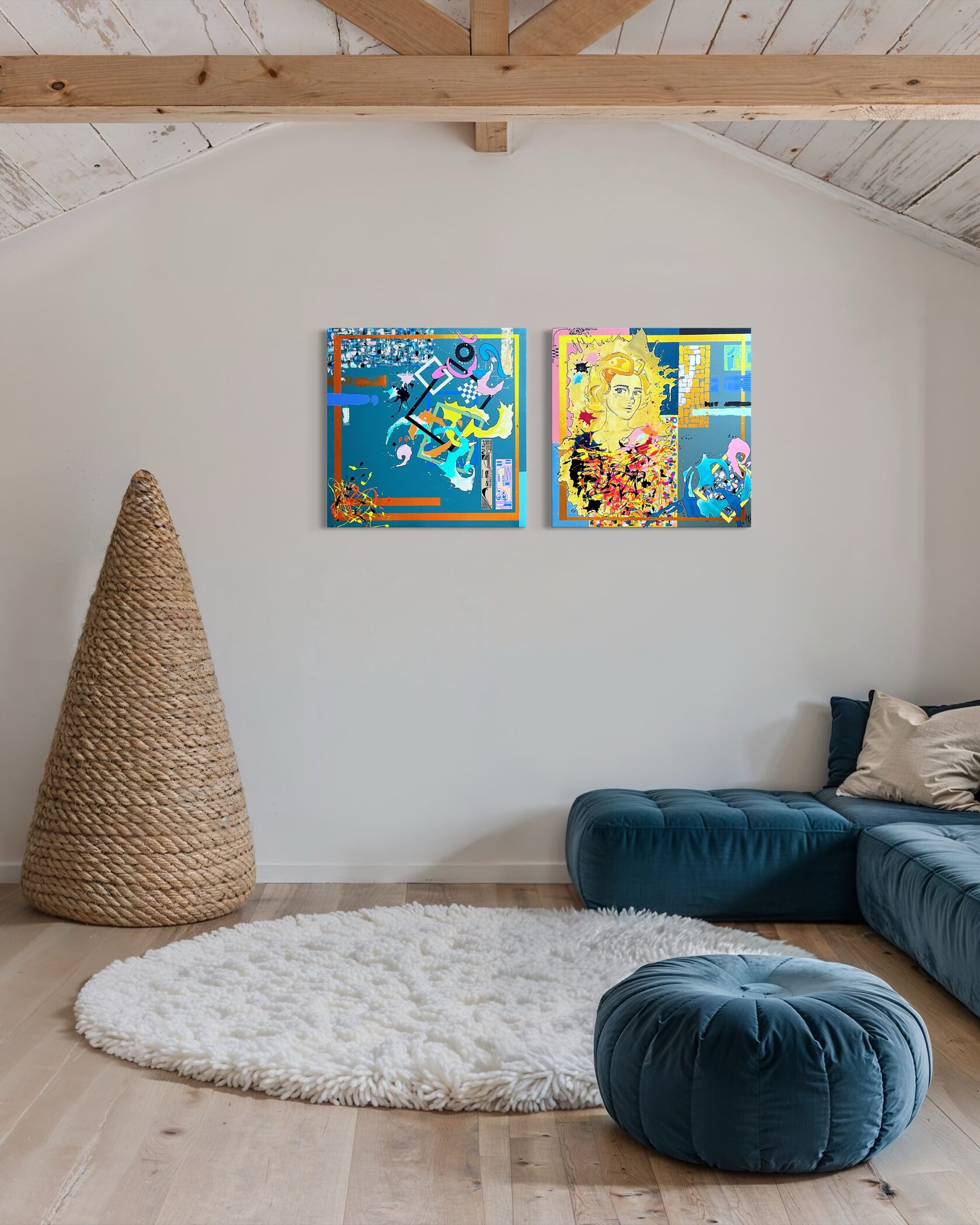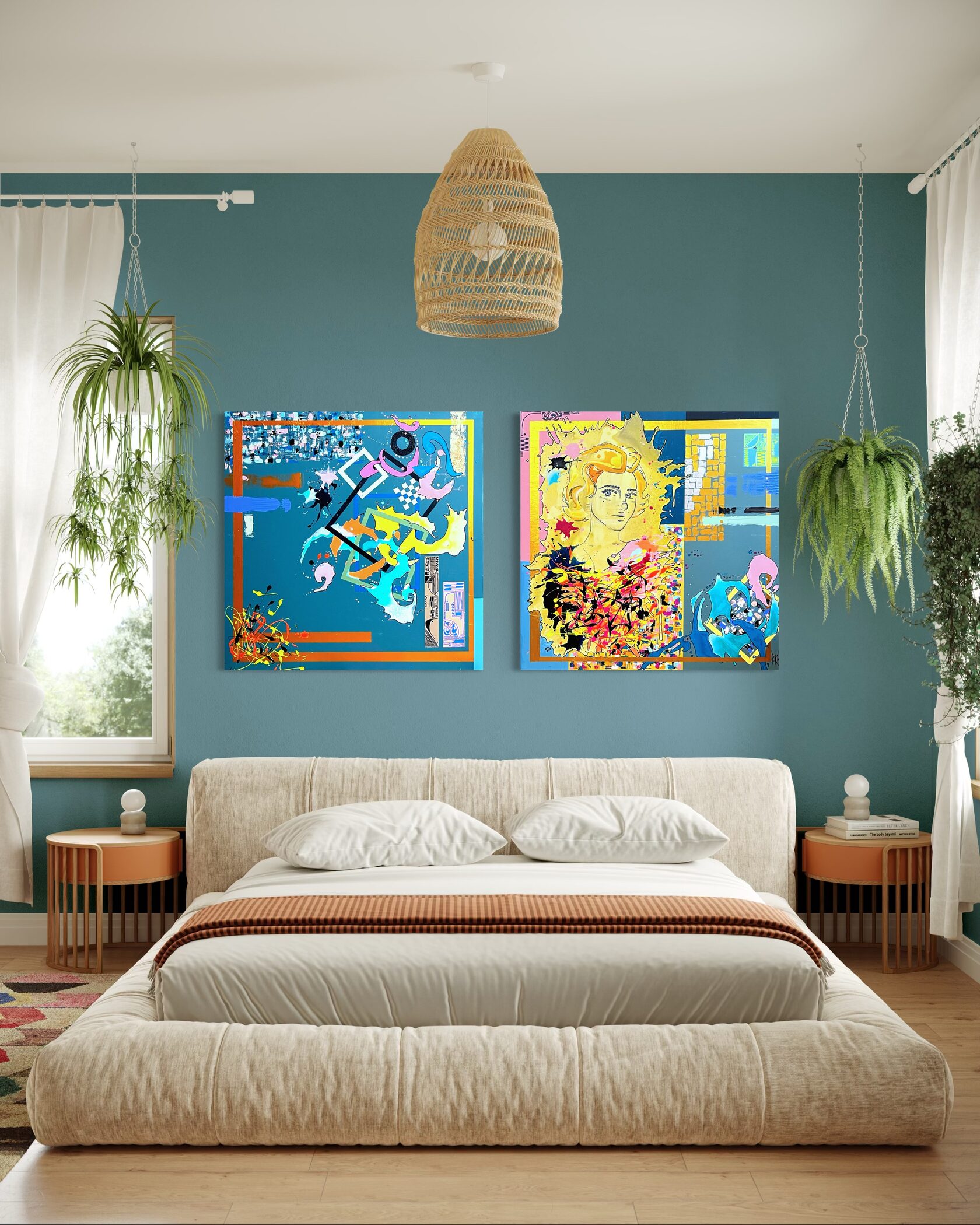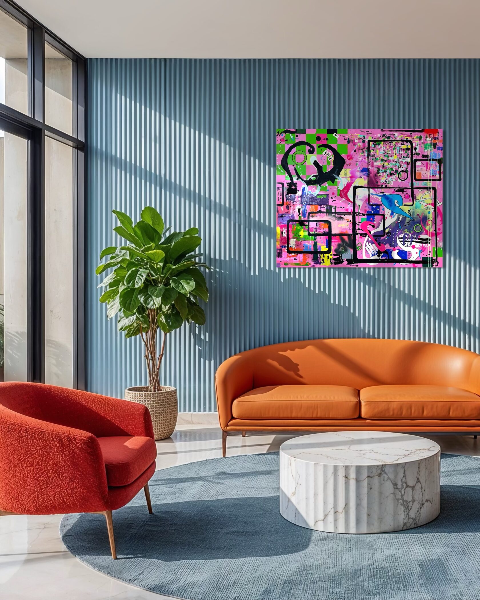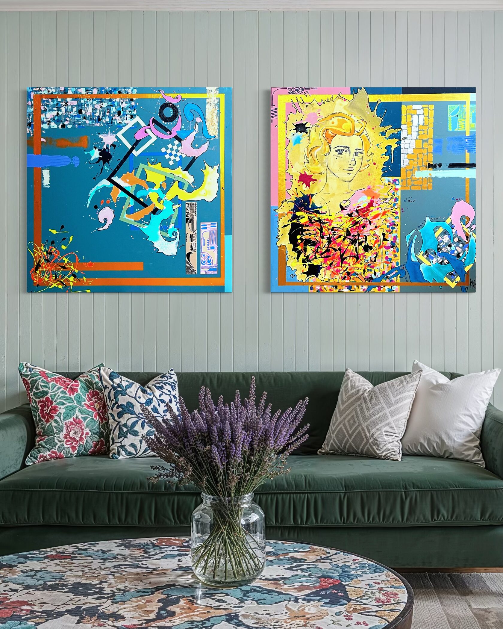 Zelený podklad jako základ, růžová jako lahodně kontrastní barva a další jejich odstíny doplněné o několik pastelově pestrých barviček mu dodávávají nádech rozvernosti, hravosti a jiskřivosti. Uhlazené horizontálně vertikální tahy v pravém horním rohu dramaticky konverzují s nahodilými výbuchy barev uprostřed. Energie a výraz postavy spokojeně rozjímající nad vším, co jí dělá radost, nad vším, co se jí povedlo, nad vším, na co je pyšná, nad láskou k životu, tvoří dílo, ve kterém můžete uvidět všecky svoje vnitřní touhy a naděje. ♥️ A to je obraz Pride!