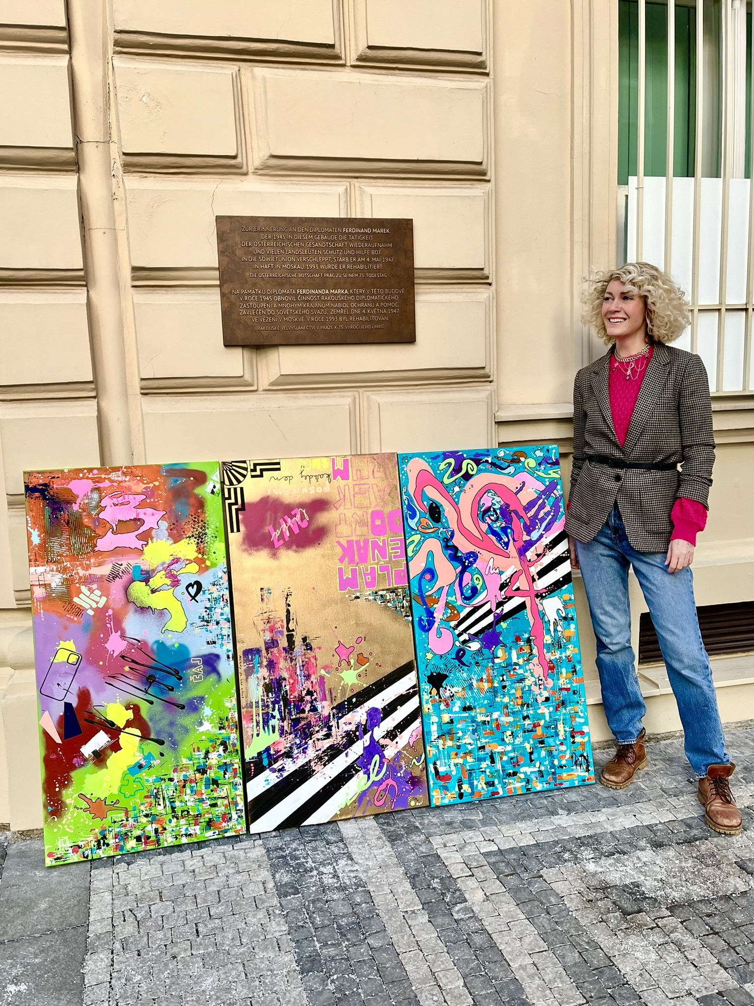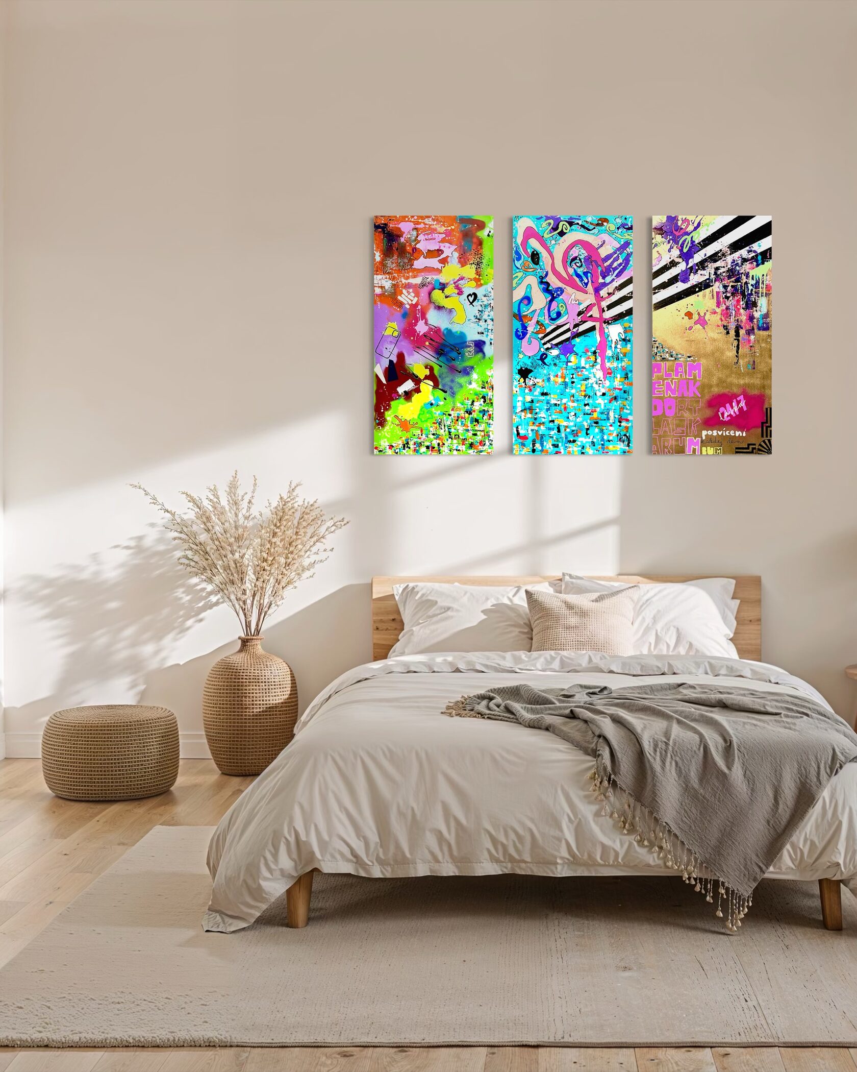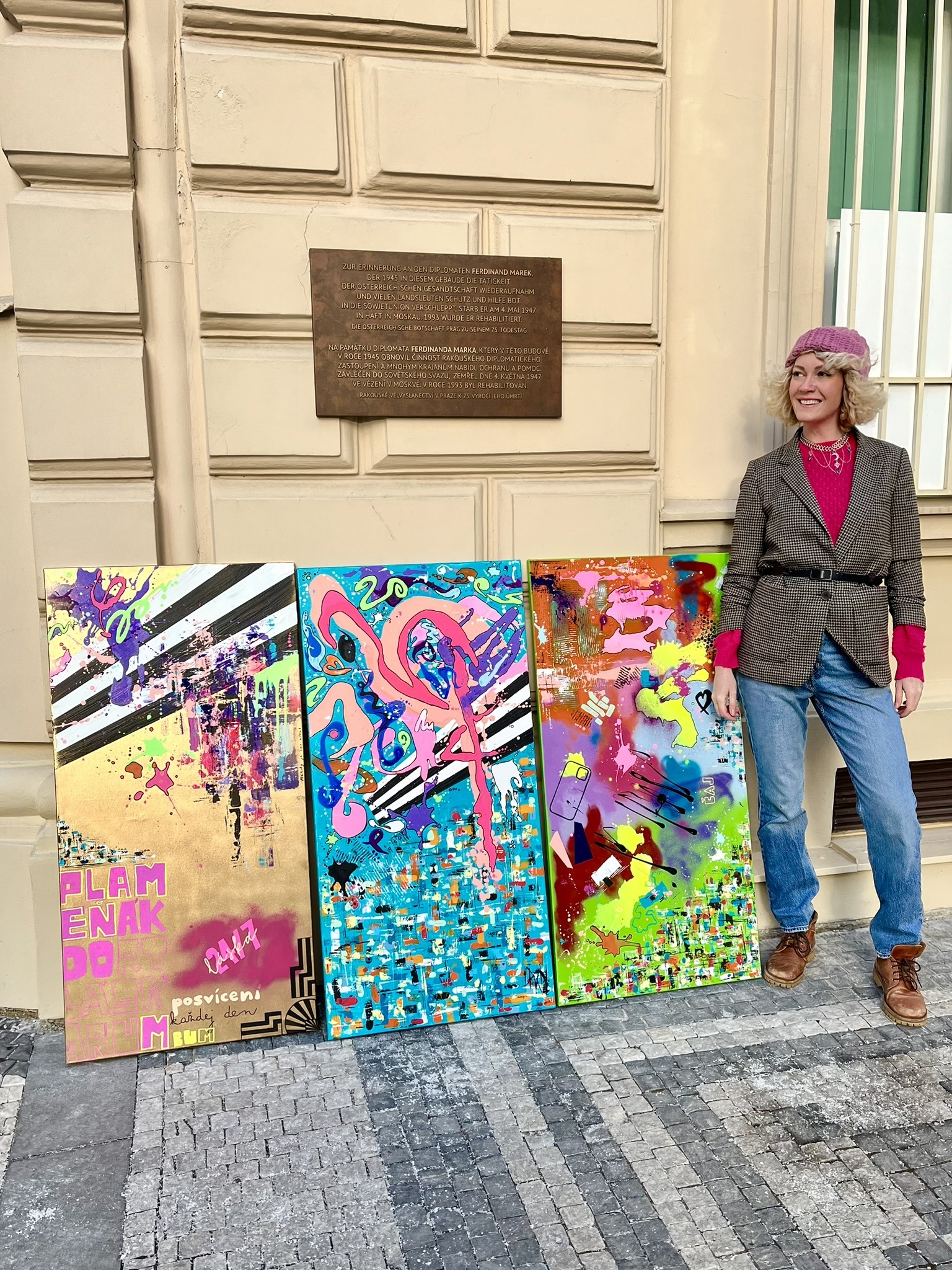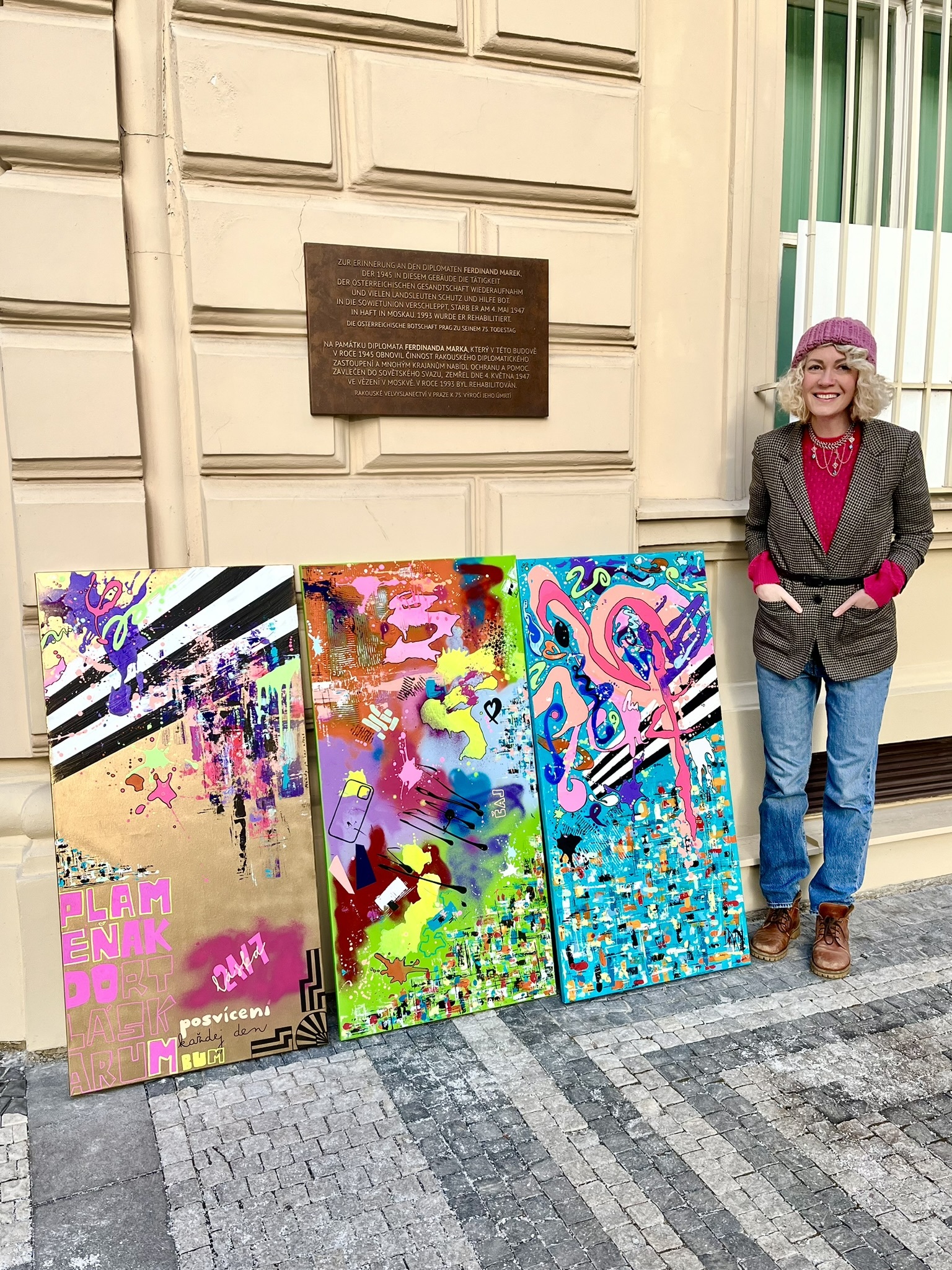 Trojdílo teď potkáte na výstavě v galerii NSPU, Husinecká 8. Anebo s dalšími obrazy na prodej na webu.
