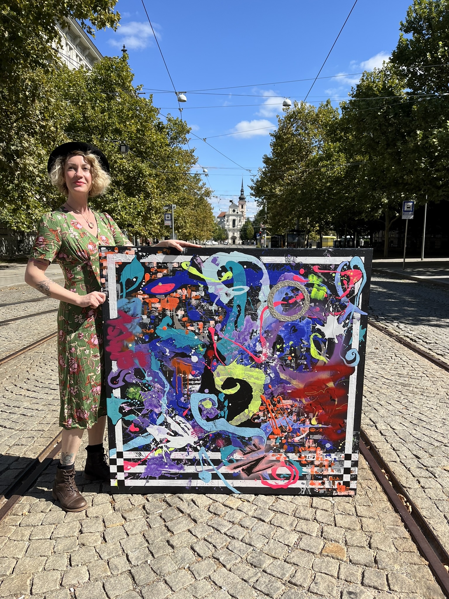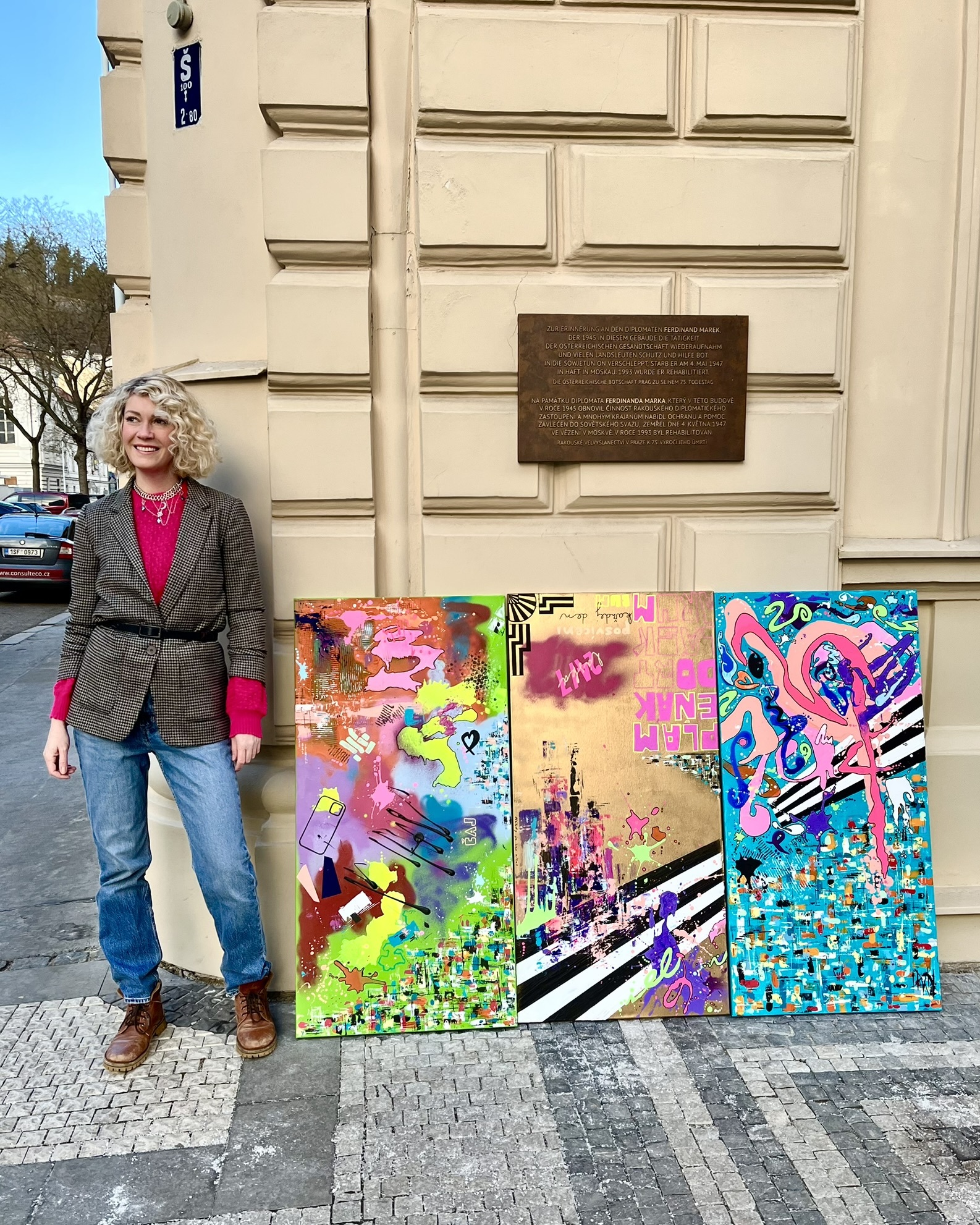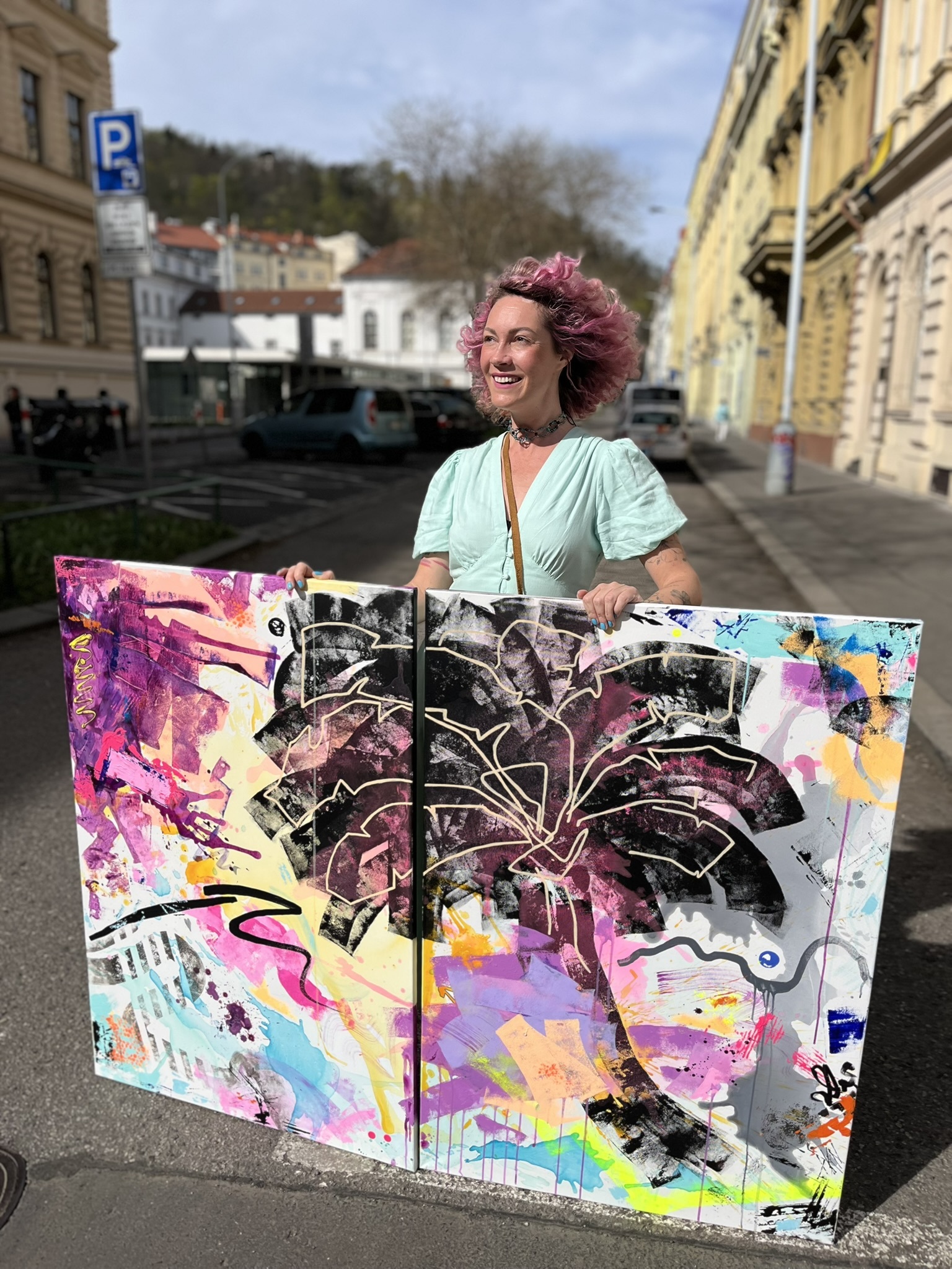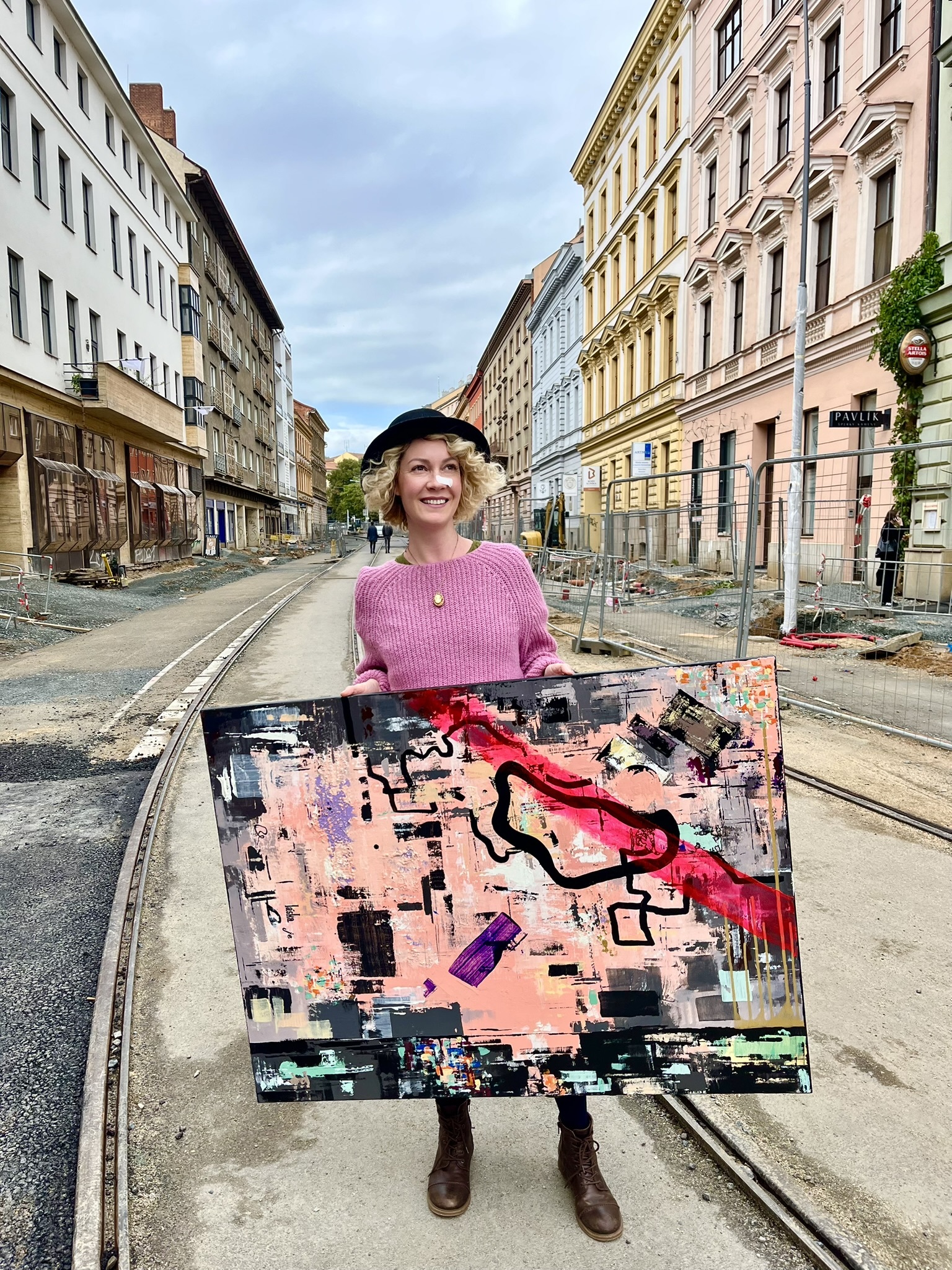 Co na tom malování fakt žeru, doslova chroustám, totiž je, že FAKT nikdy netuším, jak obraz dopadne. Nechávám se jím prostě vést. A kolikrát se stane, že nějaký tah, který si představuju „tak“, vypadá po nanesení na plátno úplně jinak. A ta chvíle se najednou stává skvělou výzvou, protože musím obrazu spěšně vymyslet novou cestu. Pracuju s novým výhledem, s novou myšlenkou, s novým příběhem. A připadám si, že mi najednou akryl koluje i žilami a září mi oči a ruce se třesou nedočkavostí nad dalším tahem. 👩🎨
