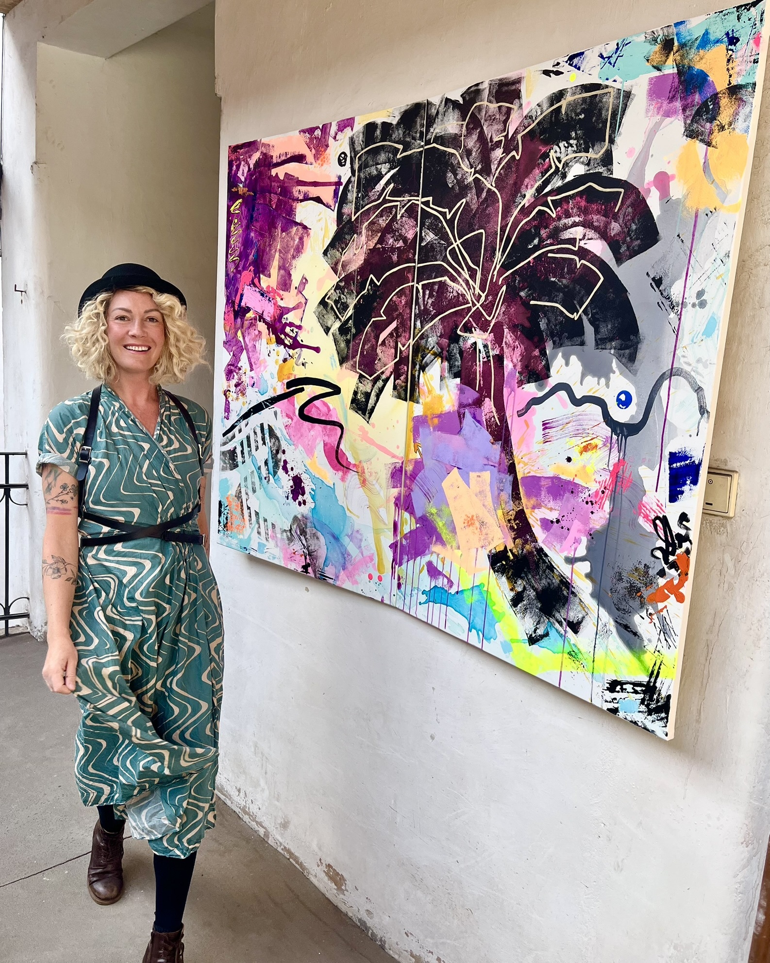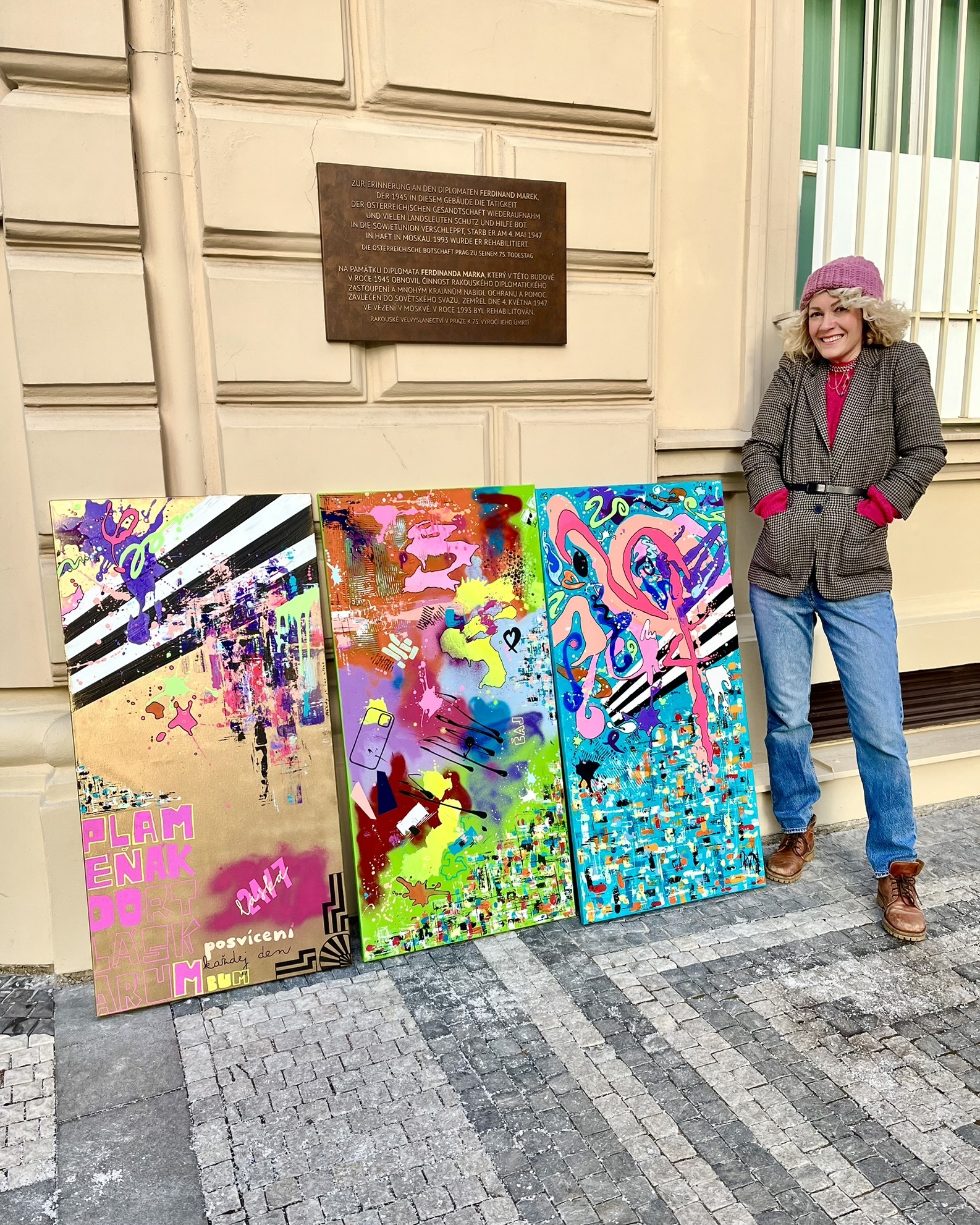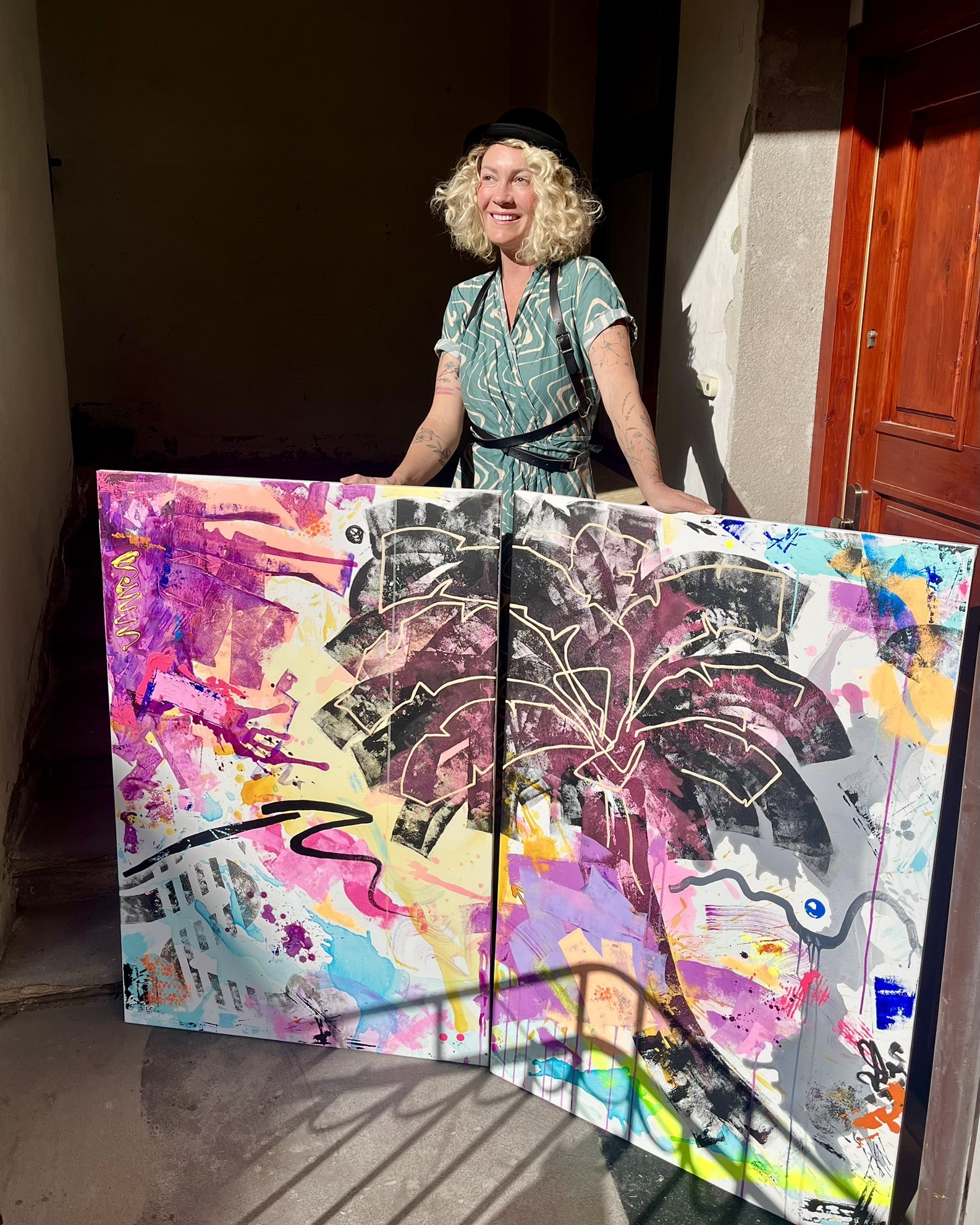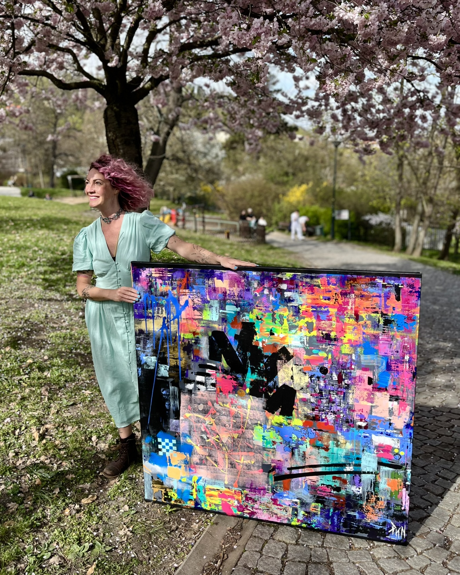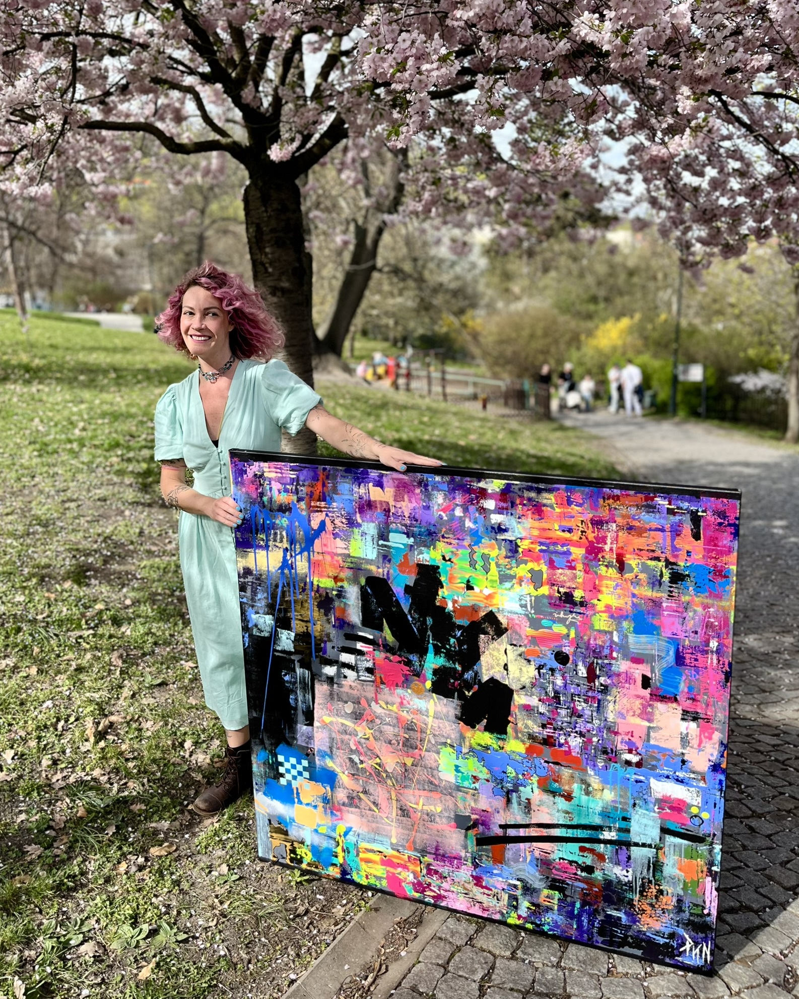 Co na tom malování fakt žeru, doslova chroustám, totiž je, že FAKT nikdy netuším, jak obraz dopadne. Nechávám se jím prostě vést. A kolikrát se stane, že nějaký tah, který si představuju „tak“, vypadá po nanesení na plátno úplně jinak. A ta chvíle se najednou stává skvělou výzvou, protože musím obrazu spěšně vymyslet novou cestu. Pracuju s novým výhledem, s novou myšlenkou, s novým příběhem. A připadám si, že mi najednou akryl koluje i žilami a září mi oči a ruce se třesou nedočkavostí nad dalším tahem. 👩🎨